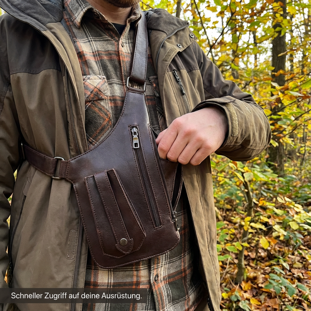 Mit dem BlackFalcon wird Organisation zum Kinderspiel! Das ergonomische Multi-Pocket-Design passt sich deinem Körper an und bietet Platz für all deine Essentials – von Smartphone über Powerbank bis zu Reisepapieren.