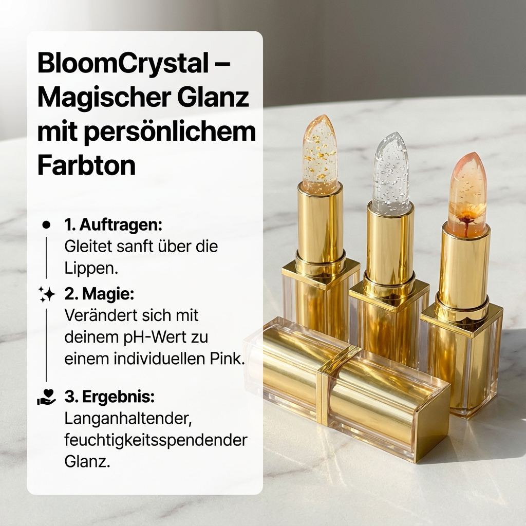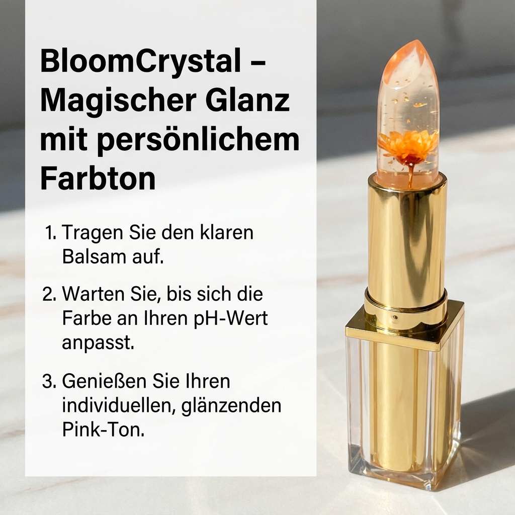 Der BloomCrystal Lippenstift ist die innovative Lösung. Die temperaturaktive Color-Changing-Formel passt sich deinem individuellen pH-Wert an und entwickelt so deinen ganz persönlichen Rosé-Ton. Die transparente Crystal-Jelly-Textur mit echter Blume vereint Pflege, Glanz und Farbe in einem einzigen Produkt.