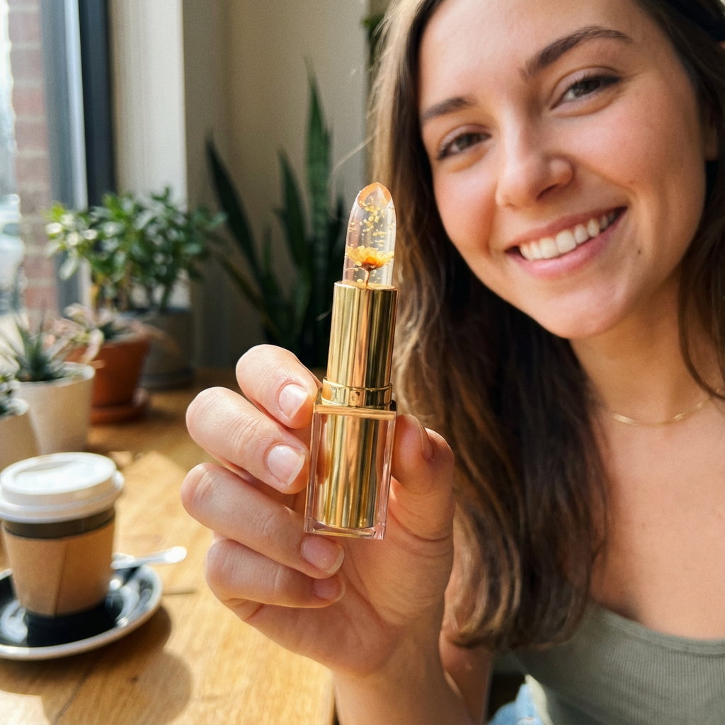 Die transparente Textur, die echte Blume im Inneren und die wasserfeste Formel machen BloomCrystal zu mehr als nur Lippenpflege.