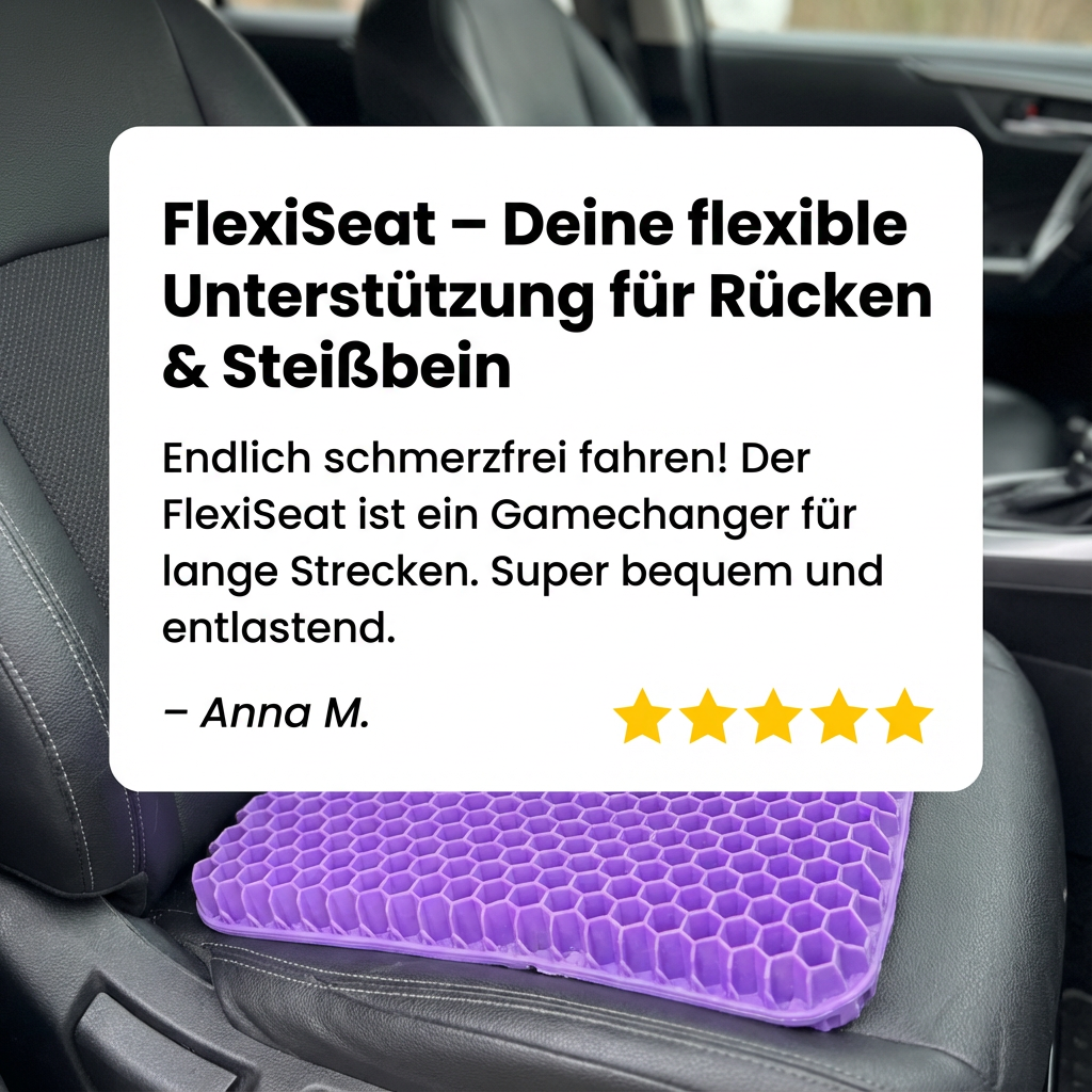 Seit ich FlexiSeat benutze, sind meine Rückenschmerzen deutlich weniger geworden. Sitze jetzt viel entspannter.