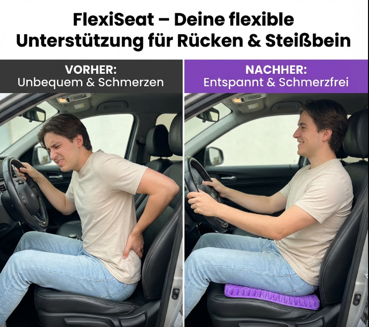 Gönn deinem Körper die Entlastung, die er verdient. Mit FlexiSeat sitzt du bequemer, gesünder und entspannter – egal wo du bist.