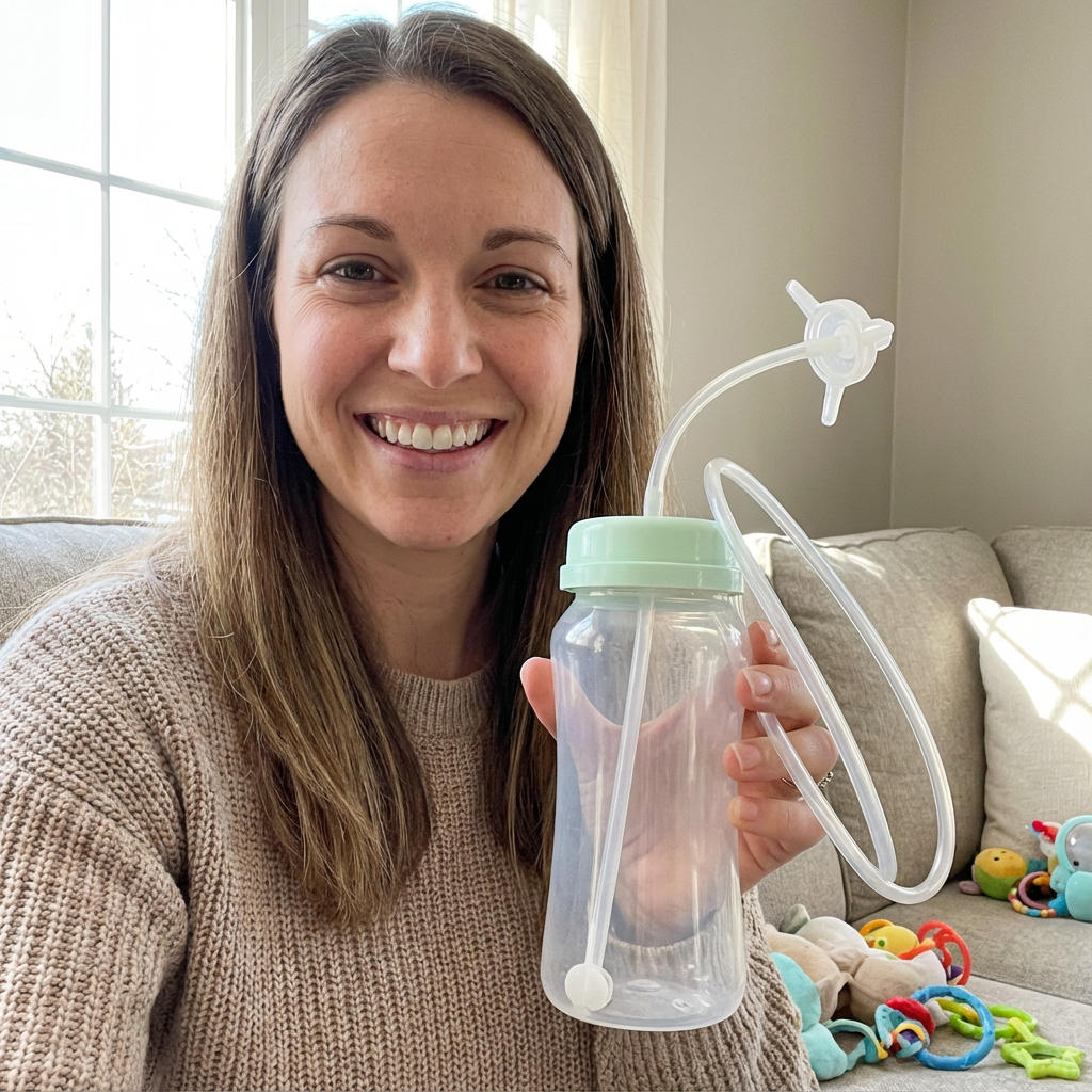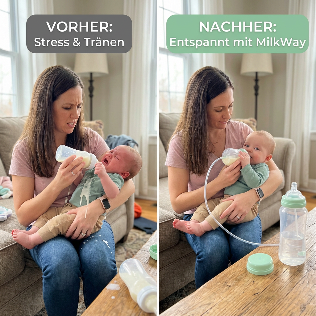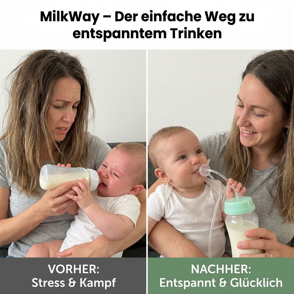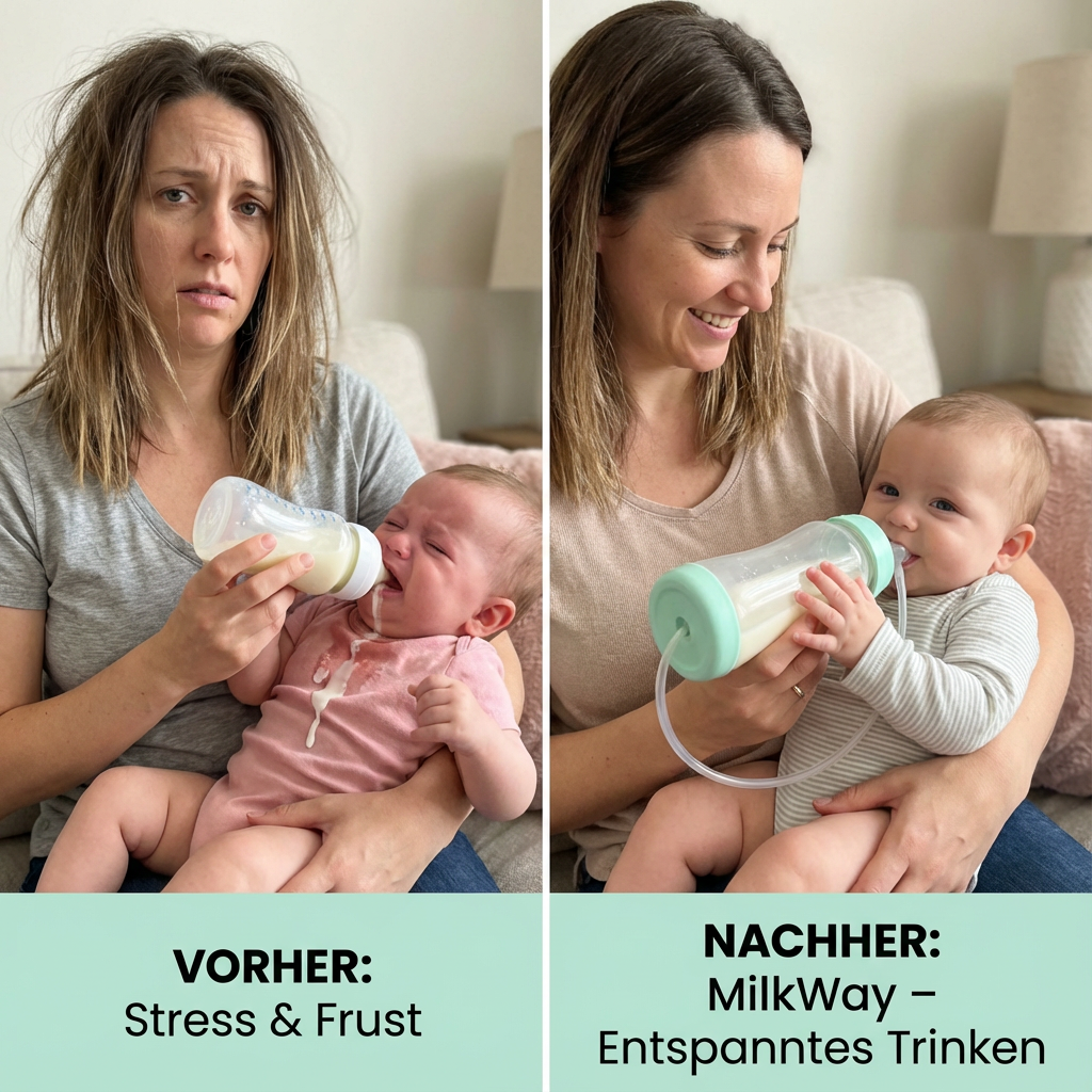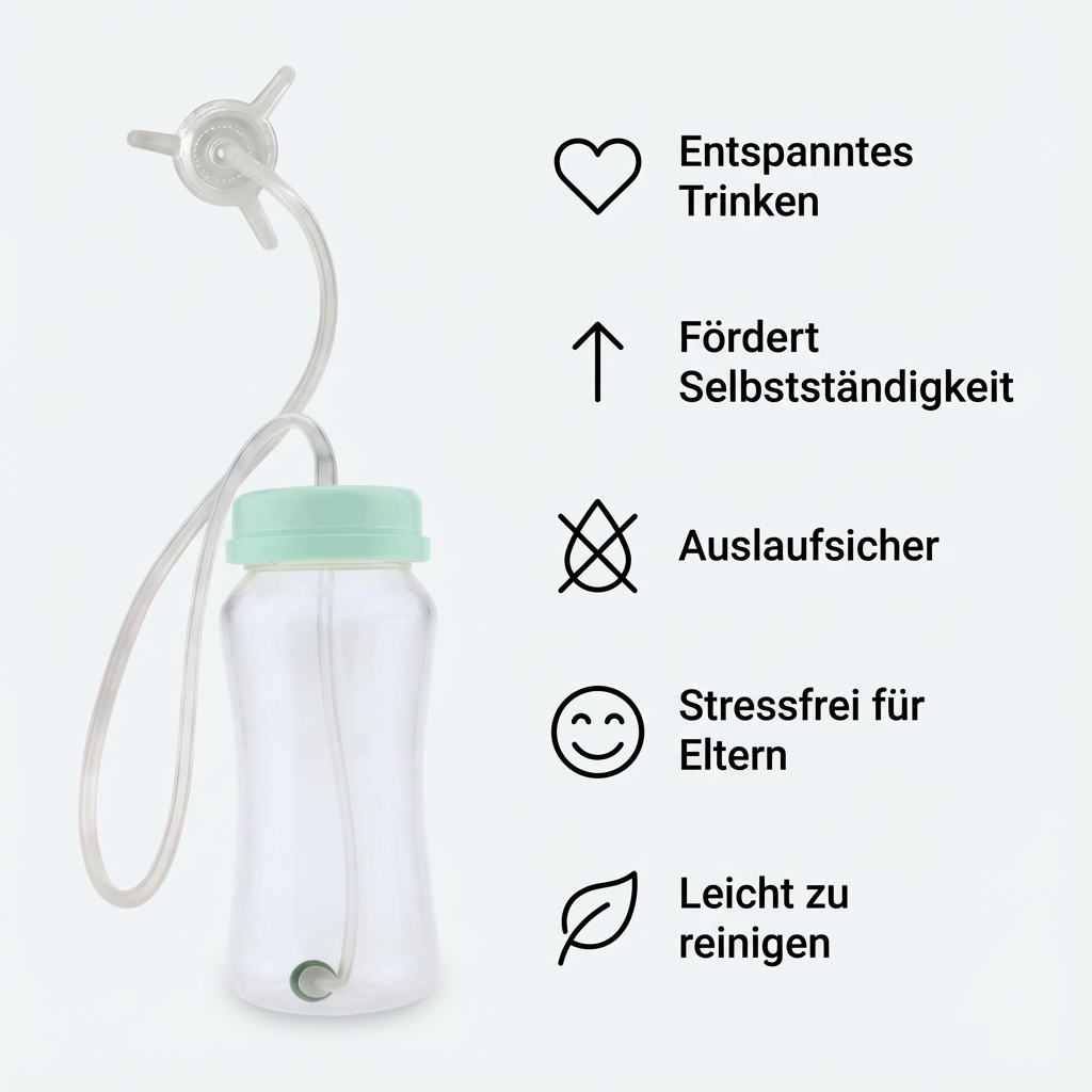 Viele Babys haben Schwierigkeiten, selbstständig und ruhig zu trinken – besonders im Liegen, im Kinderwagen oder unterwegs. Das kann schnell zu Frust bei Eltern und Kind führen: