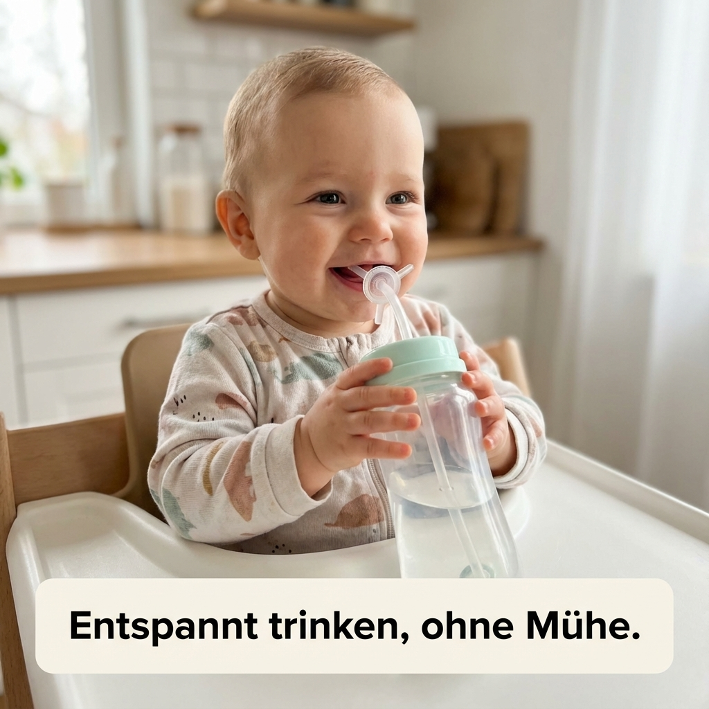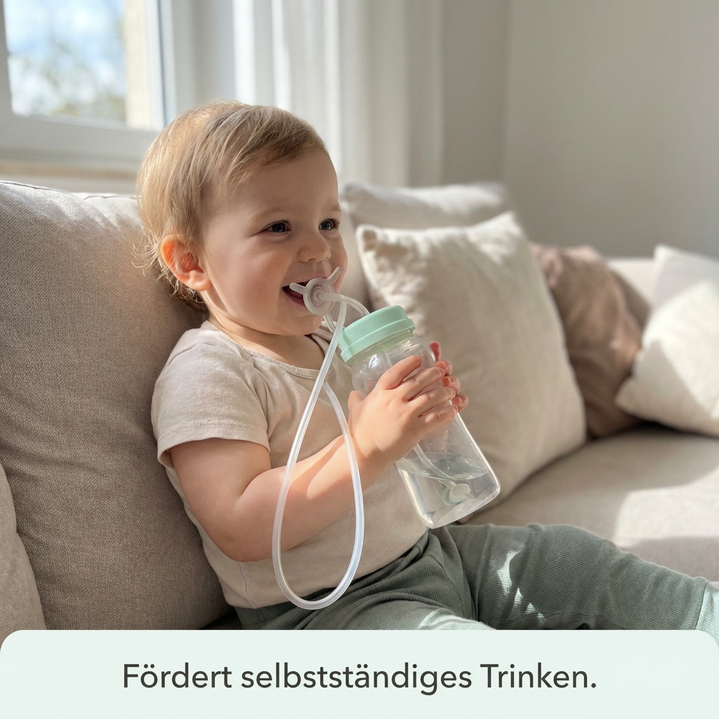 Der weiche Schlauch passt sich den Bewegungen deines Babys an und sorgt für einen gleichmäßigen Trinkfluss. So wird jede Trinkpause ruhiger, sauberer und stressfreier – egal ob zuhause oder unterwegs.