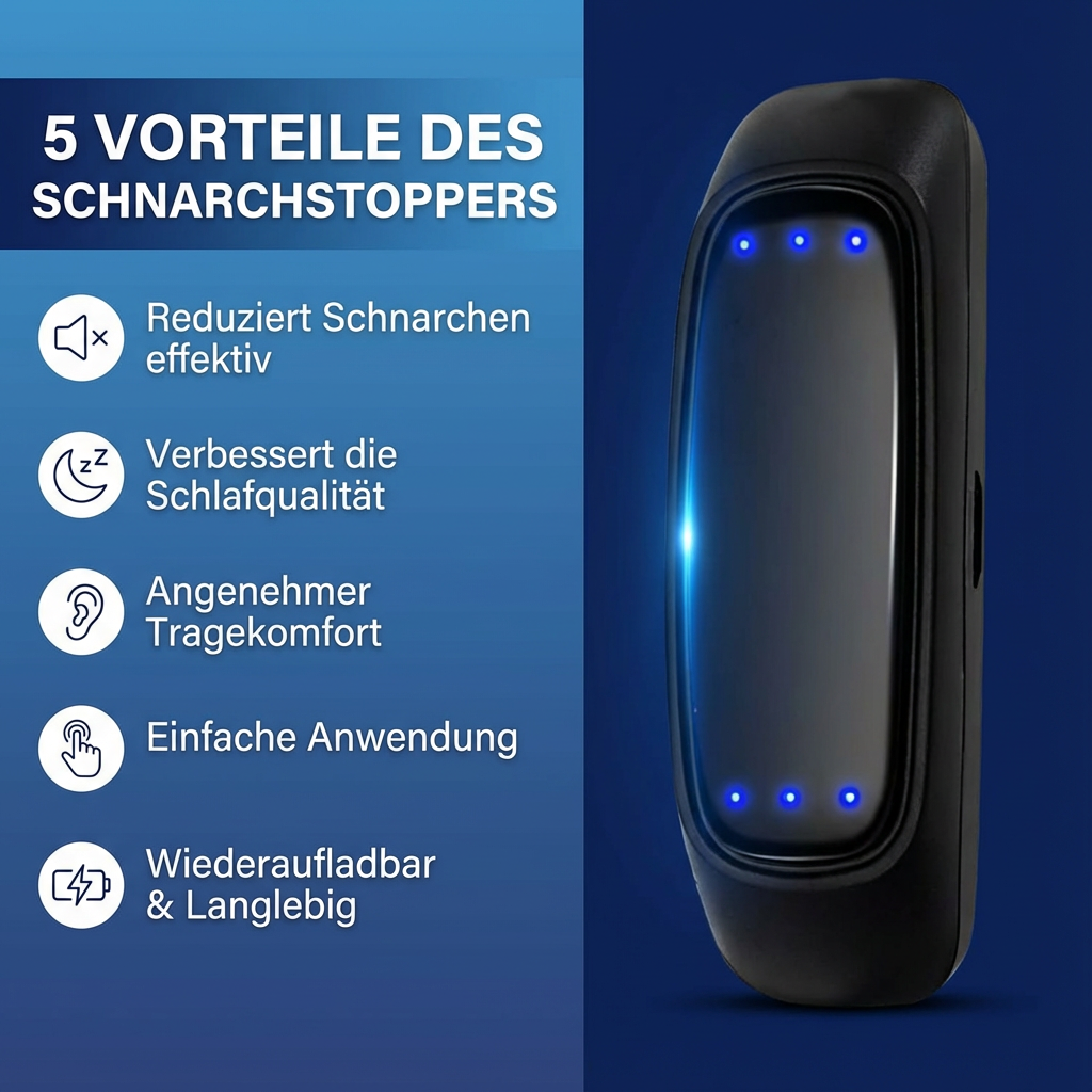 SleepPulse bietet eine moderne und diskrete Unterstützung für ruhigere Nächte. Das smarte Anti-Schnarch-Gerät erkennt Schnarchgeräusche und gibt sanfte Impulse, die helfen können, die Muskulatur zu aktivieren – ohne den Schlaf bewusst zu unterbrechen.