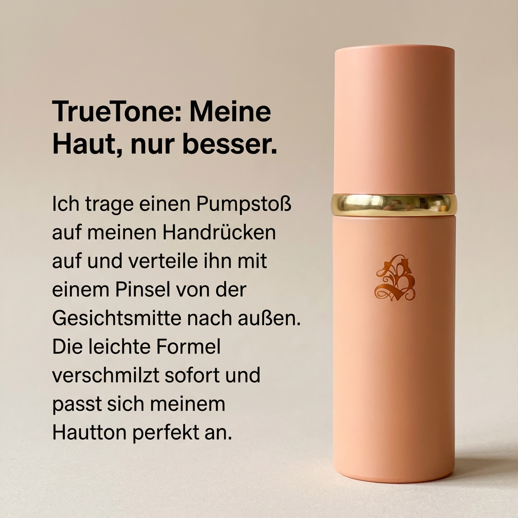 Die leichte, flüssige Textur lässt sich mühelos auftragen, setzt sich nicht in Poren oder feinen Linien ab und hält den ganzen Tag – ohne Nachschminken. TrueTone ist damit der perfekte Begleiter für alle, die weniger Produkte, weniger Aufwand und mehr Ergebnis wollen.